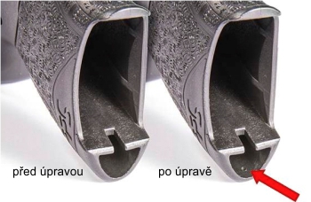 Popisovaný problém lze jednoduše vyřešit prostou a rychlou úpravou spočívající ve výměně táhla spouště. Za tímto účelem je třeba nám dodat Vaši pistoli k úpravě, jež bude samozřejmě provedena zcela zdarma.