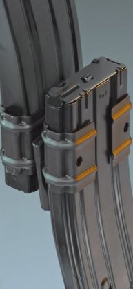 Praktická svorka na 2 kovové (slitinové, ocelové) zásobníky pro zbrane AR-15 (M-16/M-4) od izraelského výrobce E-Lander. Svorka umožnuje spojení dvou zásobníku v presne definované pozici a výrazne urychluje prebití zbrane.