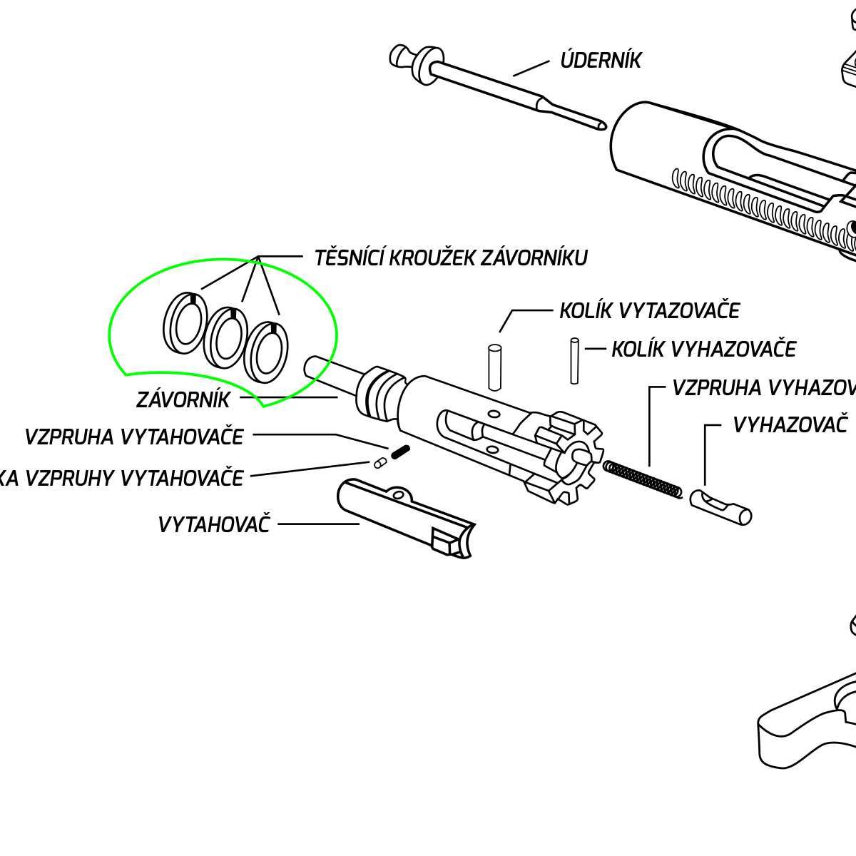 Náhradní díl závorníku pušek AR-15.