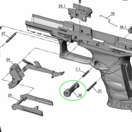 Jedná se o díl císlo 36 = 2795094 (Magazine release) dle rozkresu Walther PPQ M2.