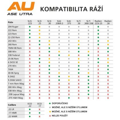 *Se sníženým tlumícím úcinkem možné užít i pro ráže .243 Win., .260 Rem., .25-06 Rem. a 6,5 × 55 SE.
