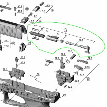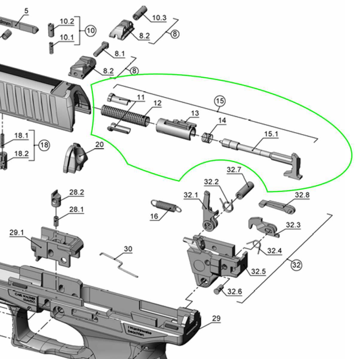 Jedná se o díl c. 15 (Striker assembly ) dle rozkresu Walther PPQ.