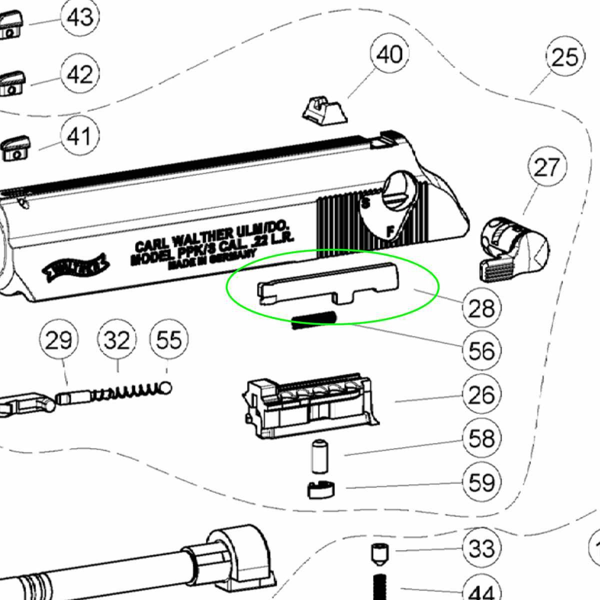 Jedná se o díl císlo 28 (firing pin) dle rozkresu Walther PPK/S 22 LR.