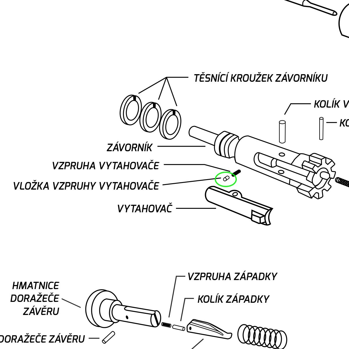 Náhradní vložka vzpruhy vytahovače pro pušky AR-15.