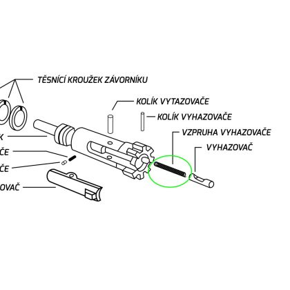 Vzhledem k vysokému namáhání vyhazovače a náchylnosti drobných pružinek k poškození nebo ztrátě při rozborce, doporučujeme mít tento díl vždy k dispozici v servisní sadě. Správná tuhost této pružiny je klíčová pro spolehlivost vyhazovacího cyklu zbraně.