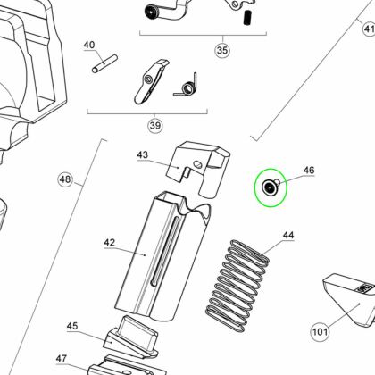 Jedná se o díl c. 46 (Magazine Butt Plate, .22 l.r.) dle rozkresu pistol Walther GSP 22 LR.