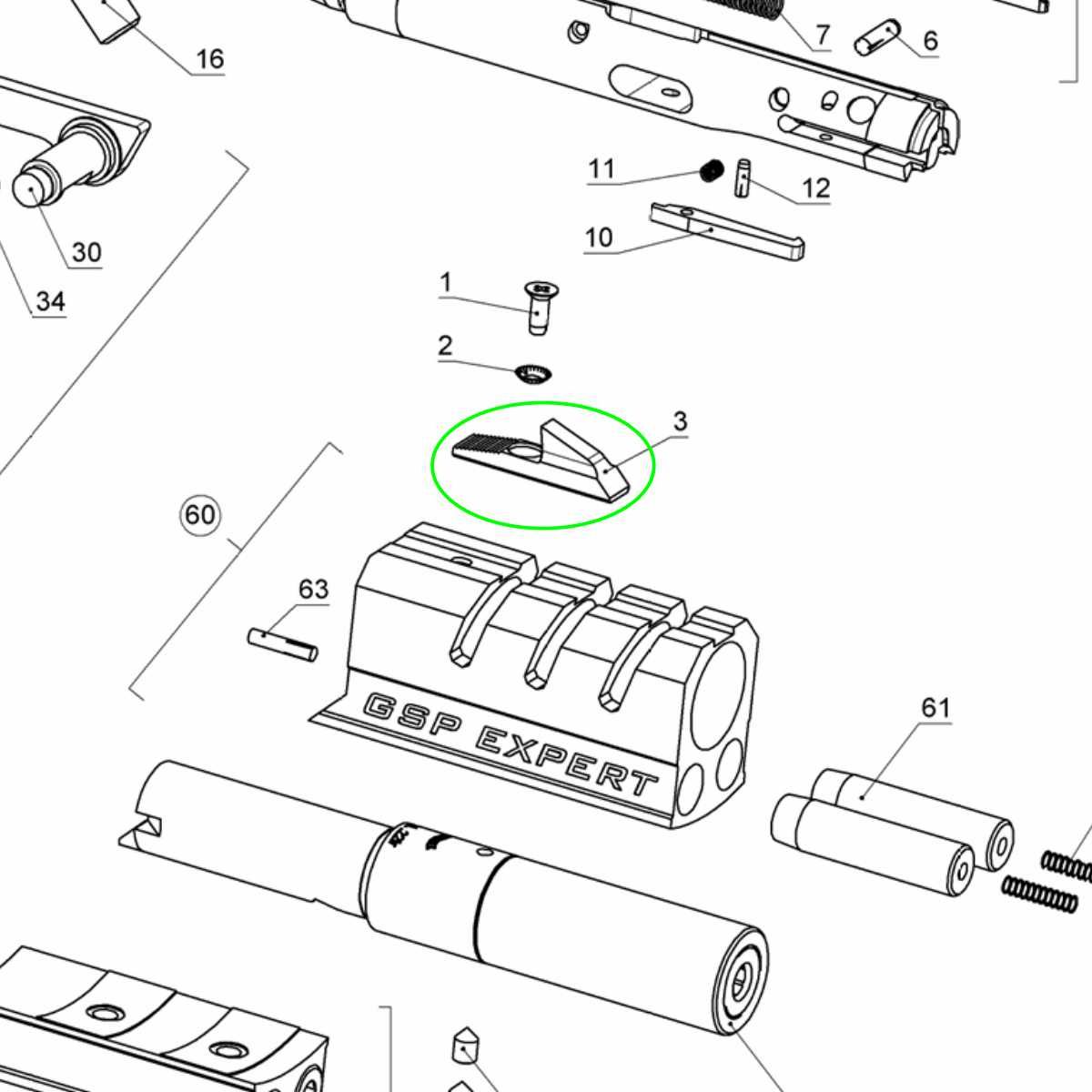 Jedná se o díl c. 3 (Front Sight W=4.2 H=9.6) dle rozkresu pistol Walther GSP 22 LR.