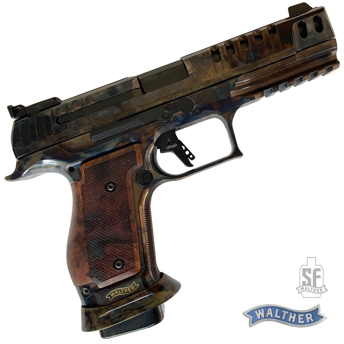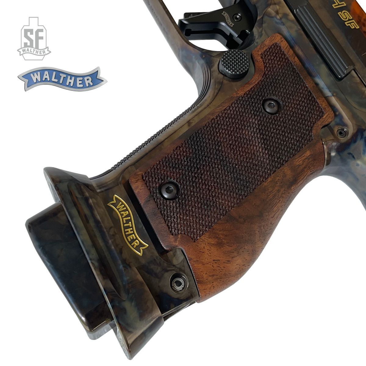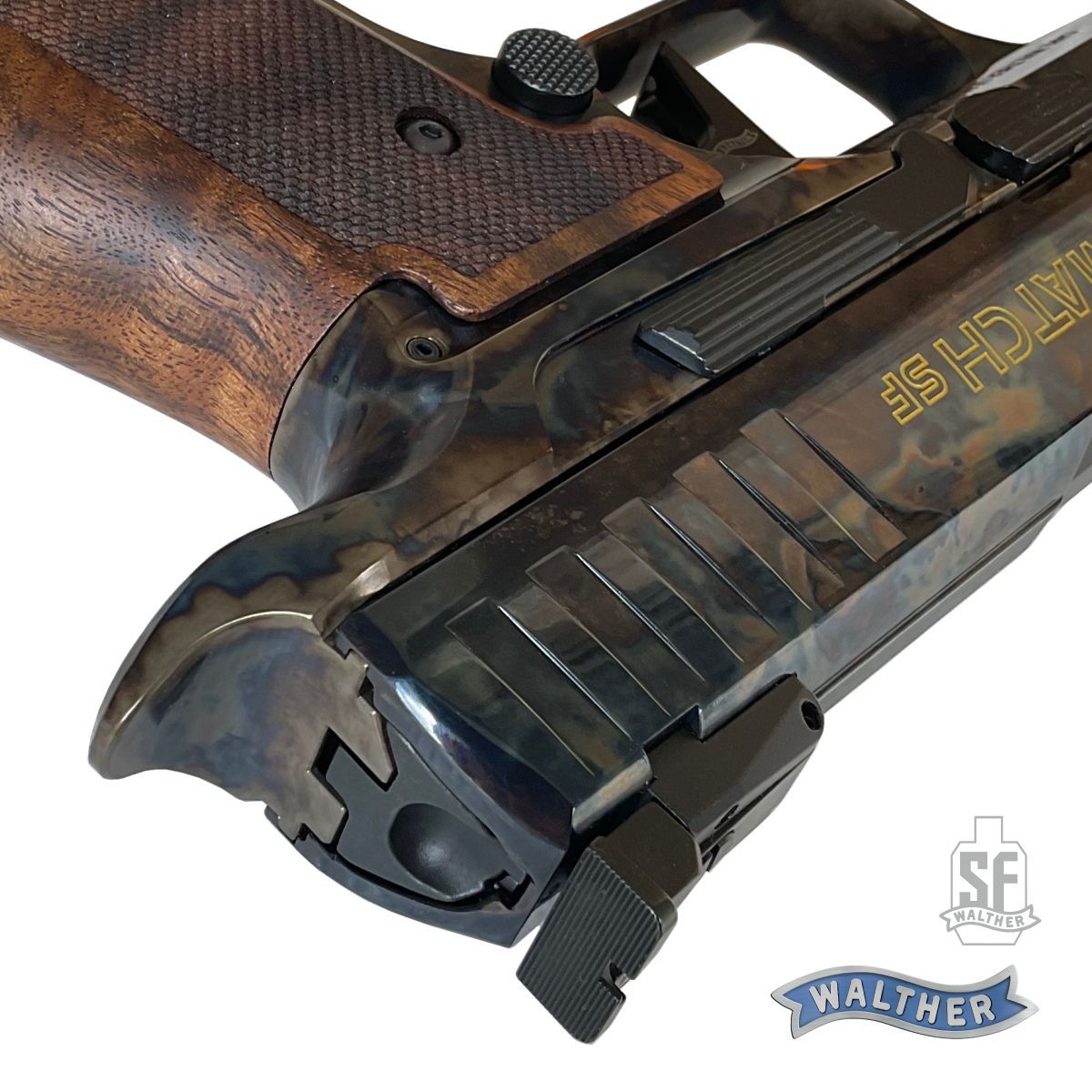 Walther Q5 Match SF Vintage je model urcený pro opravdové fajnšmekry a sberatele. Speciální povrchová úprava kalením oceli a následného chemického procesu vytvárí unikátní barevnou texturu. Následným preleštením do vysokého lesku se vytvárí opravdu unikátní povrch a zároven nemohou existovat dve vizuálne identické pistole.