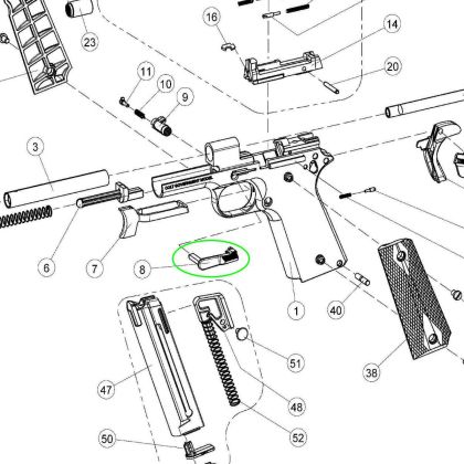 Jedná se o díl c. 8 (Slide Stop) dle rozkresu Walther PDP.