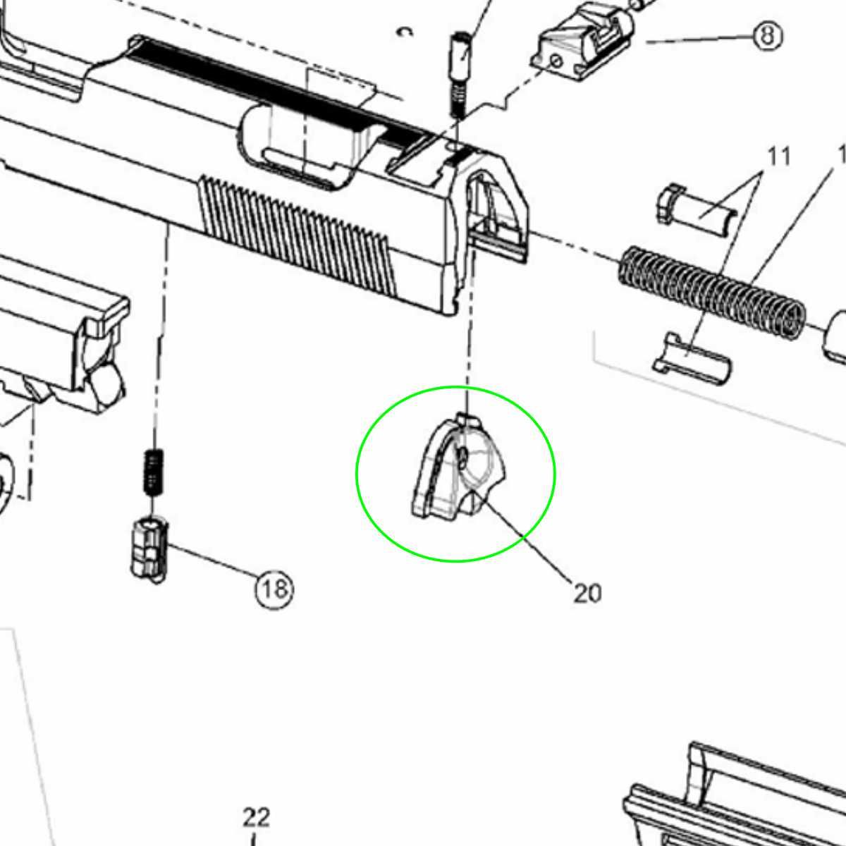 Jedná se o díl c. 20 (Slide end cap) dle rozkresu Walther P99.