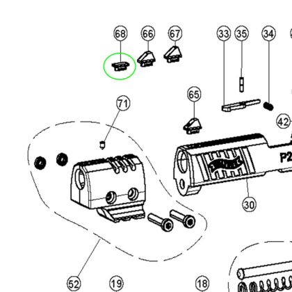Jedná se o díl císlo 68 (filler plug) dle rozkresu Walther P22Q.