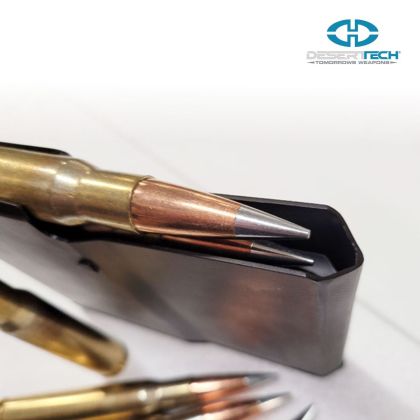 Zásobníky Desert Tech Steel Case jsou konstruovány s jednoduchým, ale úcinným integrovaným konstrukcním prvkem pro maximalizaci presnosti, který ostatní výrobci obvykle prehlížejí. Zásobník je speciálne tvarován tak, aby kopíroval obrys nábojnice, a zajištuje nábojnici uvnitr zásobníku za krcek nábojnice namísto za špicku strely. To pomáhá minimalizovat poškrábání, otlaky a poškození špicky strely a zároven zajištuje dokonalé zarovnání nábojnice s nábojovou komorou pri nabíjení náboje ze zásobníku.