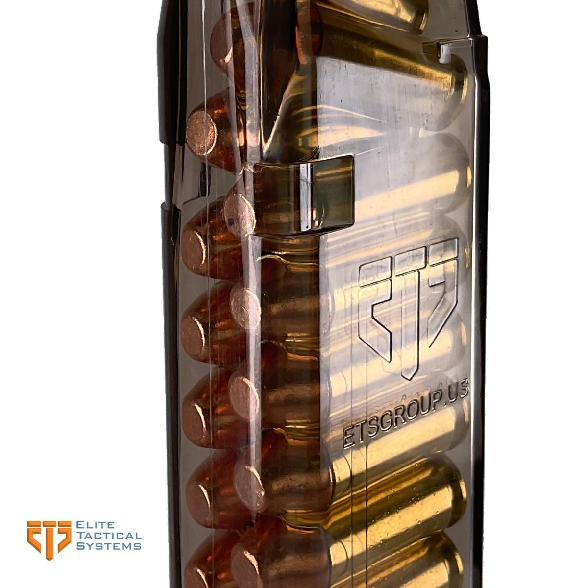Univerzální zásobník pro pistole Glock 20, 29 a 40 v ráži 10 mm Auto. Kapacita zásobníku je 20 nábojů. Průhledné tělo poskytuje okamžitý přehled o množství nábojů v zásobníku. Konstrukce ETS vyniká extrémní odolností proti pádu, chemikáliím, UV záření i teplotním extrémům (teplu i mrazu).
