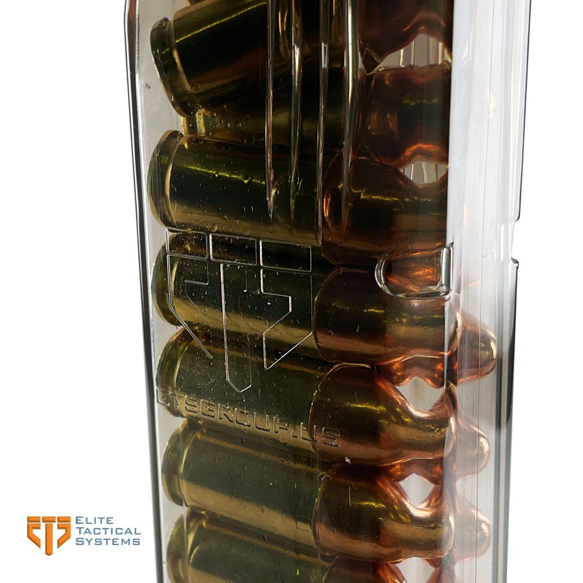 Elite Tactical Systems Group (ETS) využívá nejmodernější konstrukční a výrobní postupy. Průhledné polymerové zásobníky ETS jsou spolehlivé, cenově dostupné a hrdě vyráběné v USA, přičemž jejich konstrukce zajišťuje plynulé podávání střeliva.