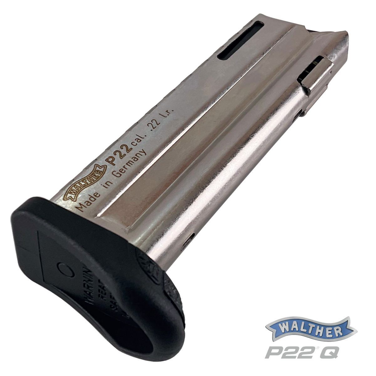 Originální náhradní zásobník určený pro oblíbené malorážkové pistole Walther P22Q a novější verzi P22QD. Zásobník je z výroby osazen prodlouženou patkou (finger rest), která výrazně zlepšuje ergonomii úchopu, zejména u střelců s větší dlaní, a zajišťuje lepší kontrolu nad zbraní při střelbě.