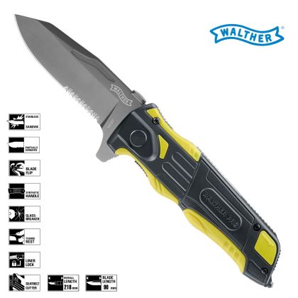 Záchranárský zavírací nuž a radí mezi špickové produkty výrobce zbraní a doplnku Walther / Umarex. Jedná se o odolný nuž z prekládané oceli Sandvik 12c27 a dalších kvalitních materiálu odolávajících i nárocným podmínkám.