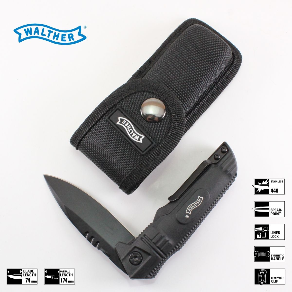 Stejne jako všechny soucasné skládací nože Walther / Umarex, tak i tento kousek je vybaven nylonovým opaskovým pozdrem pro pohodlné nošení.