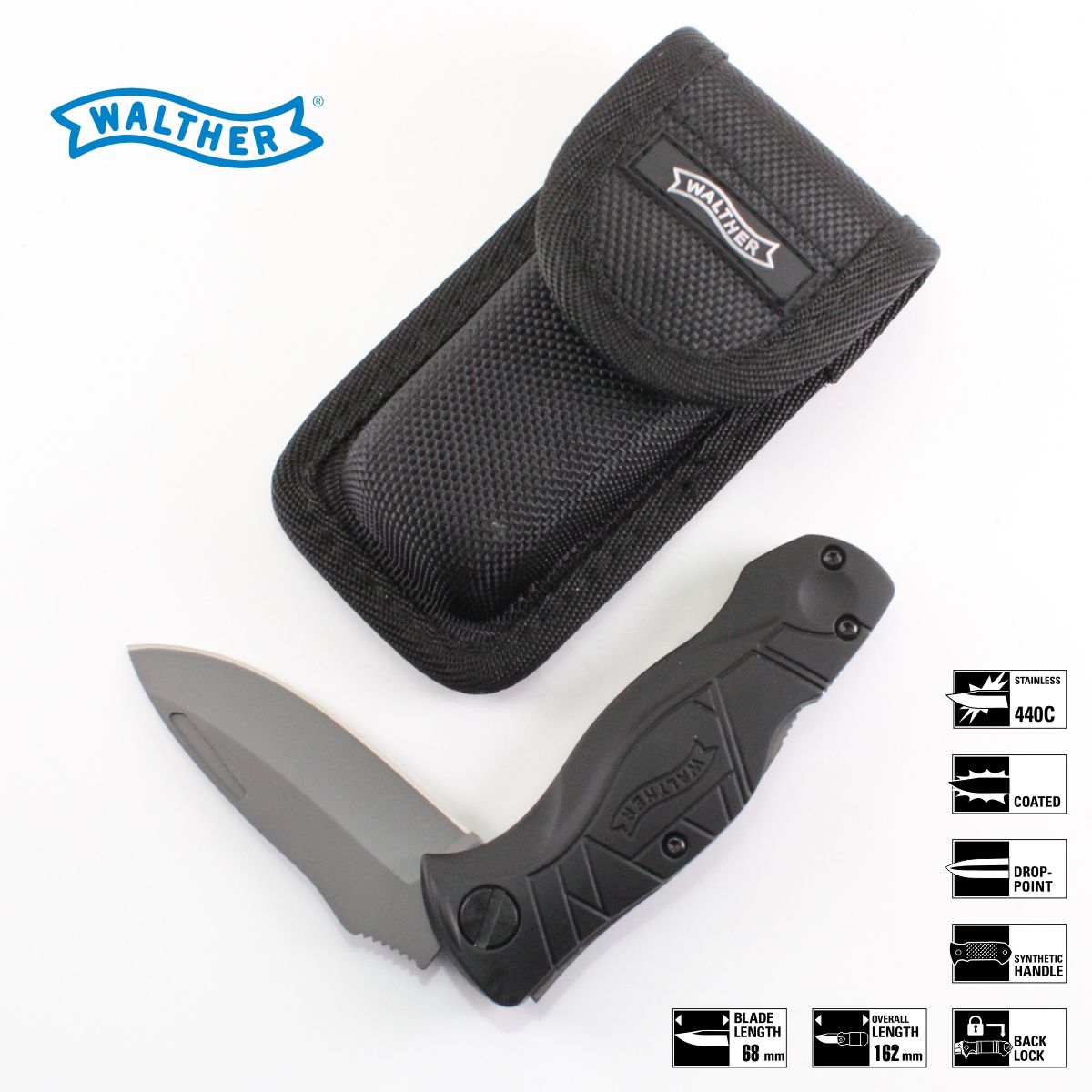 Jako všechny nože Walther / Umarex, tak i tento disponuje opaskovým pouzdrem z nylonu.